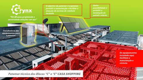 Na foto ao lado é possível ver a criação de patamares técnicos para a transferência das condensadoras. A foto foi tirada antes da transferência dos equipamentos para aumentar a compreensão sobre o projeto e aumentar a visão sobre o potencial do espaço criado, em contraste com a situação anterior.